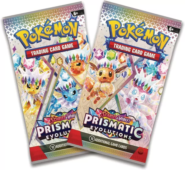 2 paquetes de refuerzo de Scarlet & Violet—Prismatic Evolutions de TCG Pokémon.