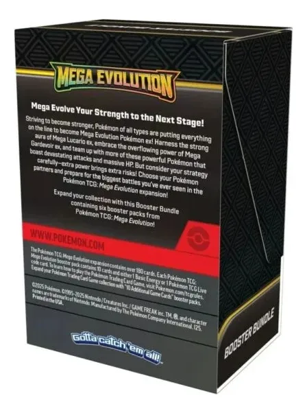 El Booster Bundle Pack de Mega Evolutions es perfecto para quienes desean más sobres en un solo producto, sin accesorios adicionales, enfocándose exclusivamente en la apertura de cartas y en la posibilidad de obtener Pokémon destacados, artes alternativos y cartas de alta rareza.